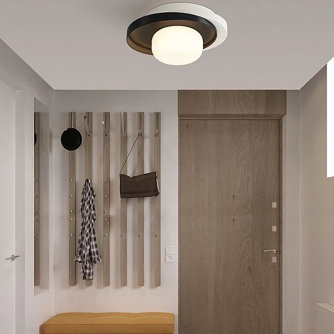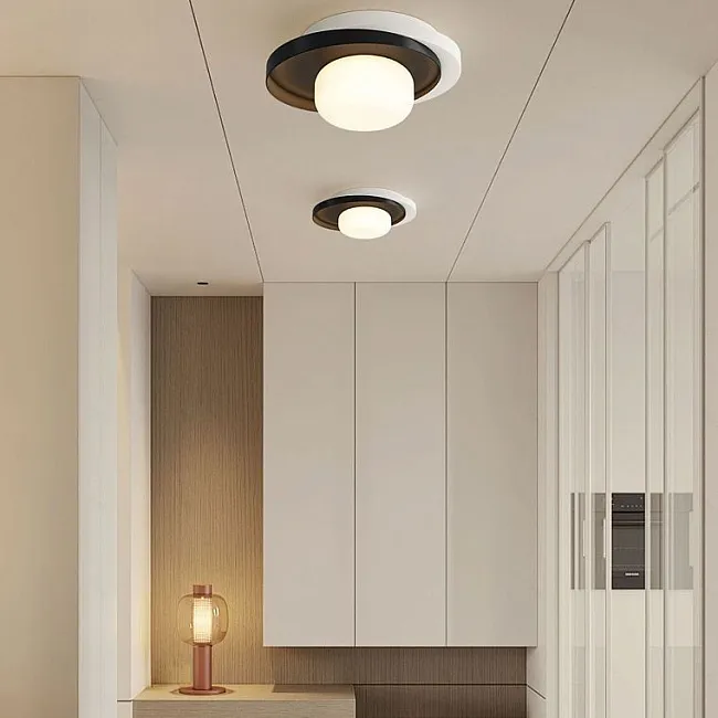 Серия светодиодных потолочных светильников ассиметричной формы и дисковидным плафоном