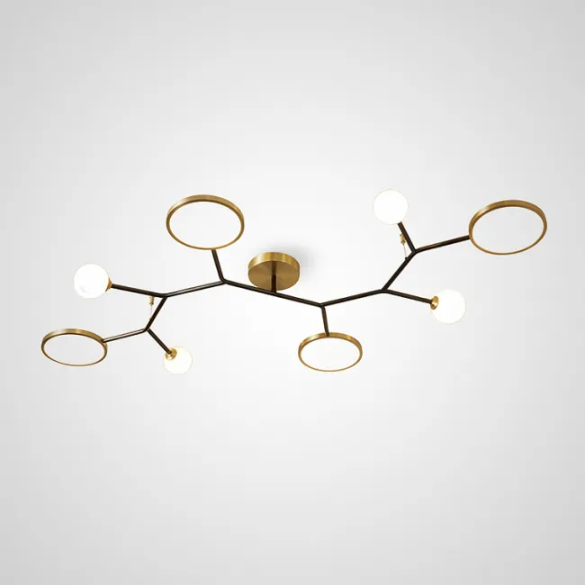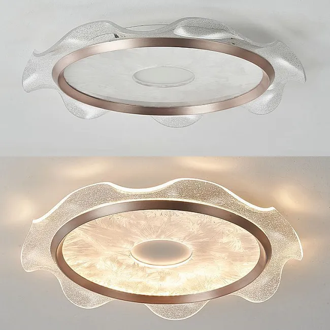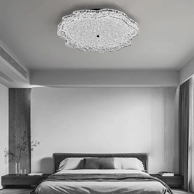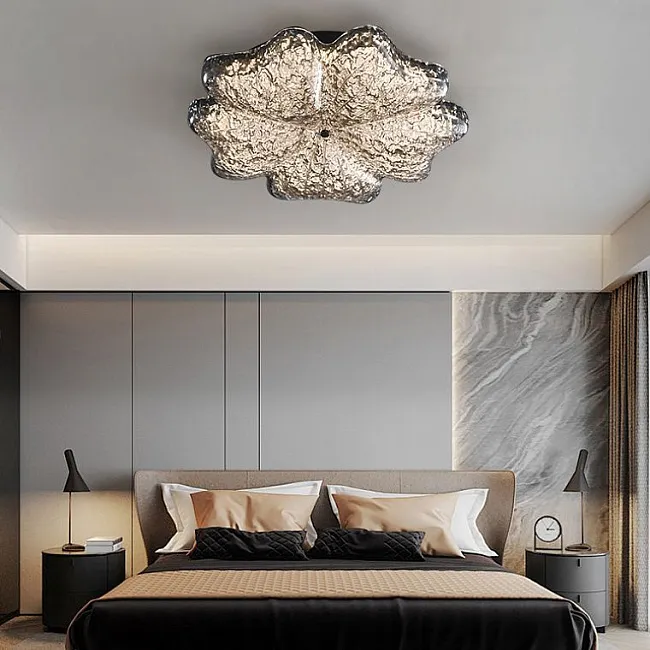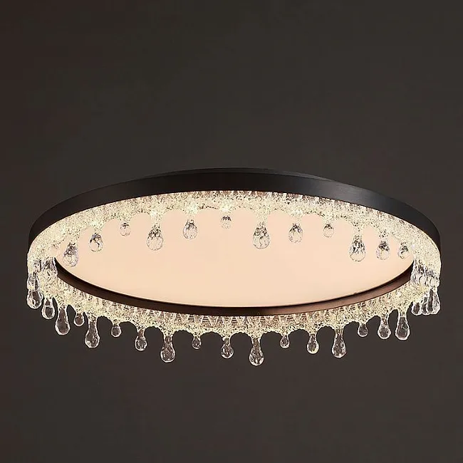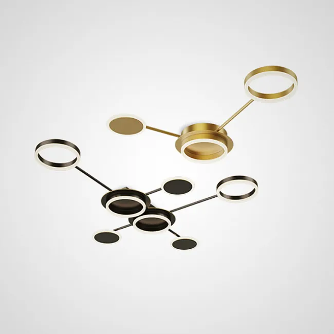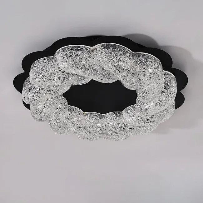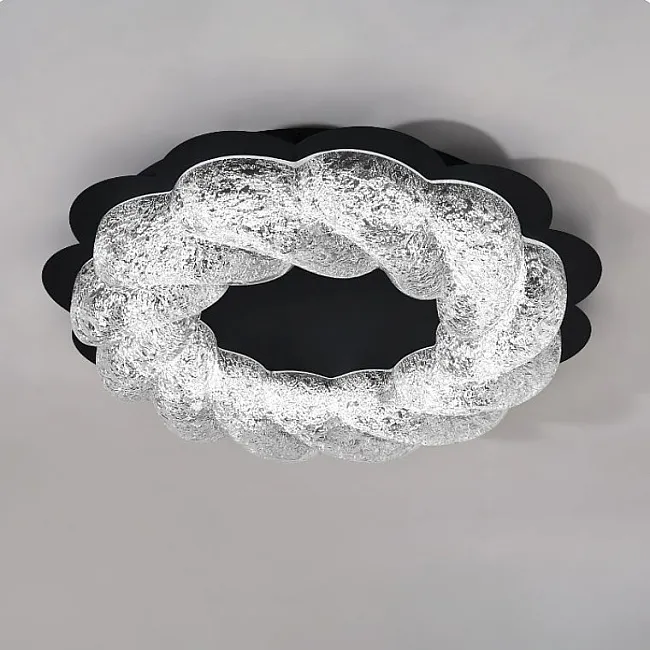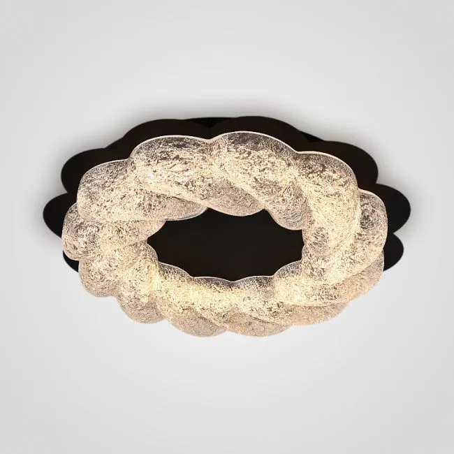 Потолочные современные дизайнерские светильники изготавливаются из самых разных, порой неожиданных материалов: каучука, кожи, мрамора, полимеров. Но в то же время используются и классические варианты: стекло, хрусталь, металлы, такие как латунь.