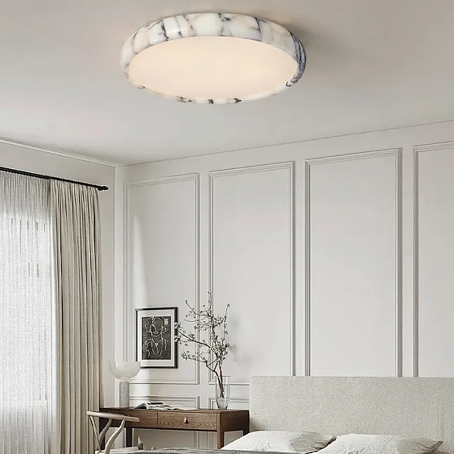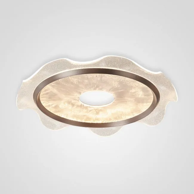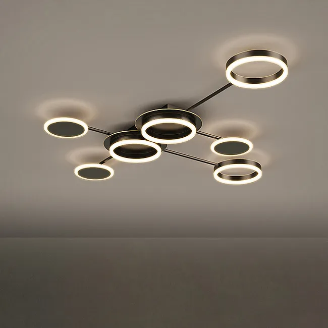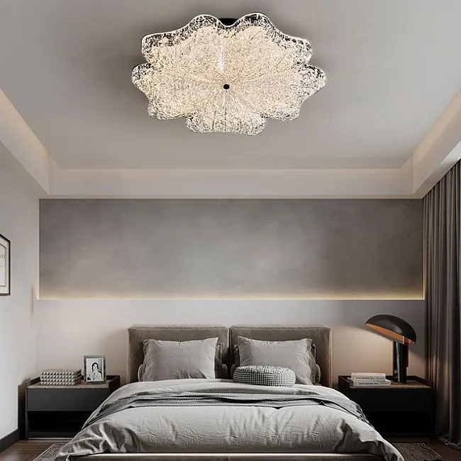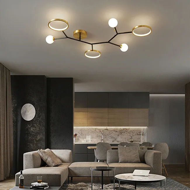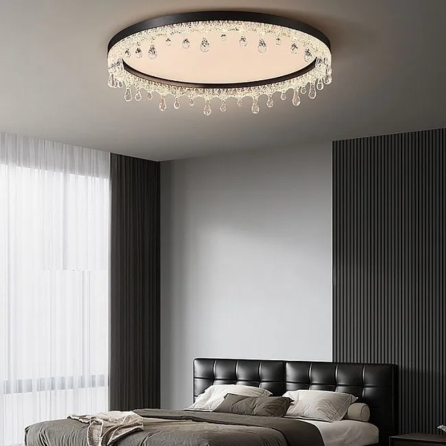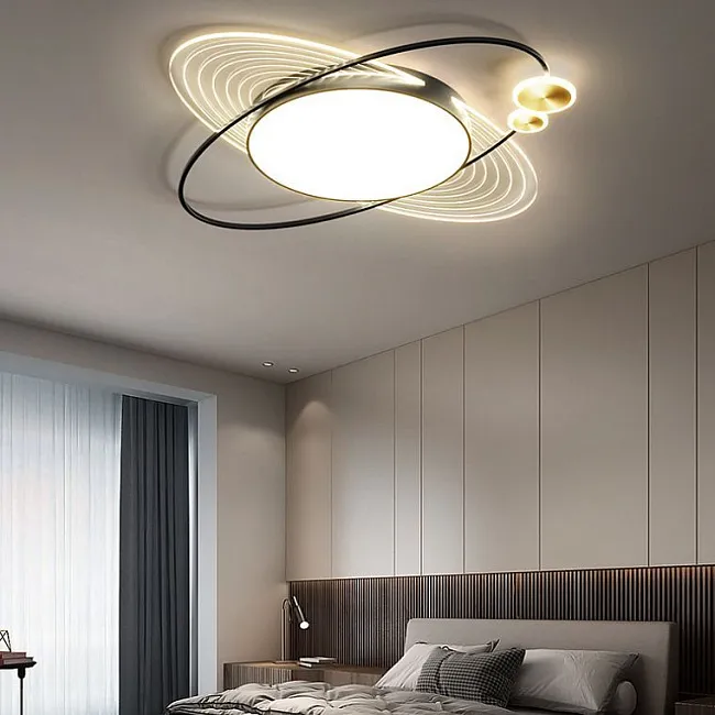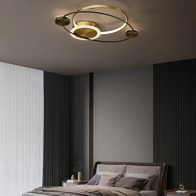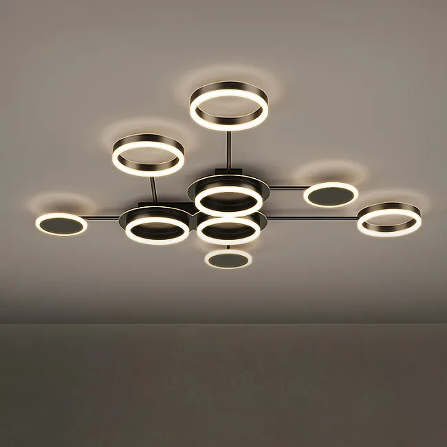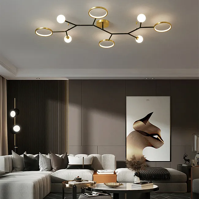 Потолочные современные дизайнерские светильники изготавливаются из самых разных, порой неожиданных материалов: каучука, кожи, мрамора, полимеров. Но в то же время используются и классические варианты: стекло, хрусталь, металлы, такие как латунь.