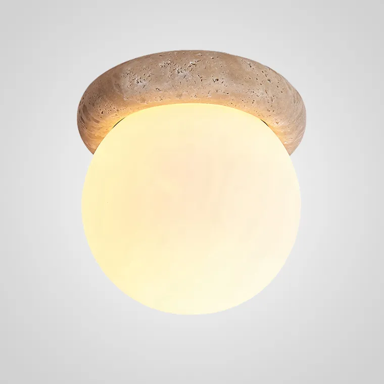 Потолочный светильник TEDOR - это стильный и элегантный светильник, который имеет шарообразный стеклянный плафон и основание из натурального травертина. Этот потолочный светильник оснащен одной лампой, обеспечивая достаточное освещение в помещении.