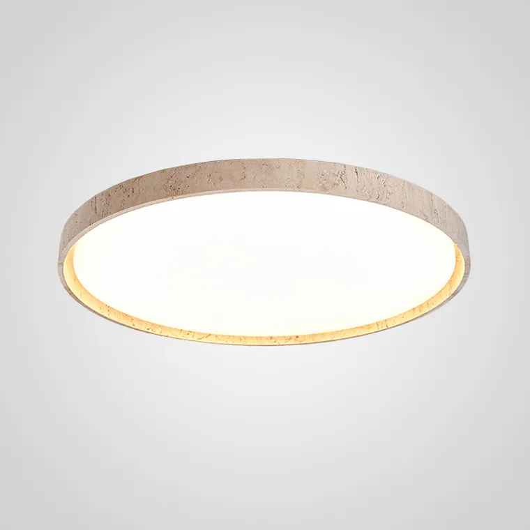 Серия потолочных светодиодных светильников с каменным корпусом на круглом основании из темного и светлого дерева