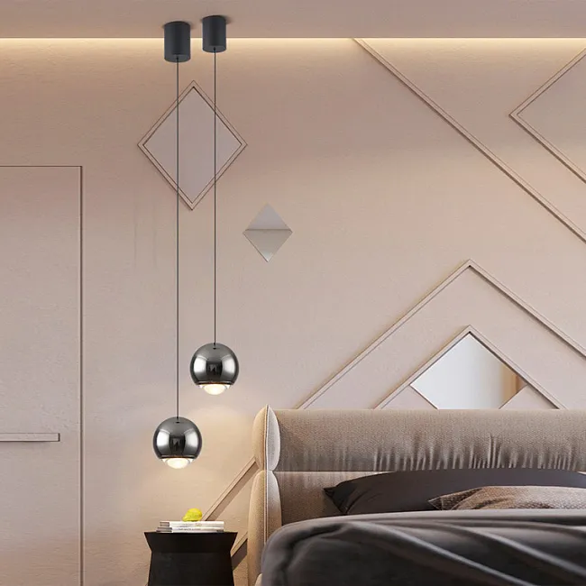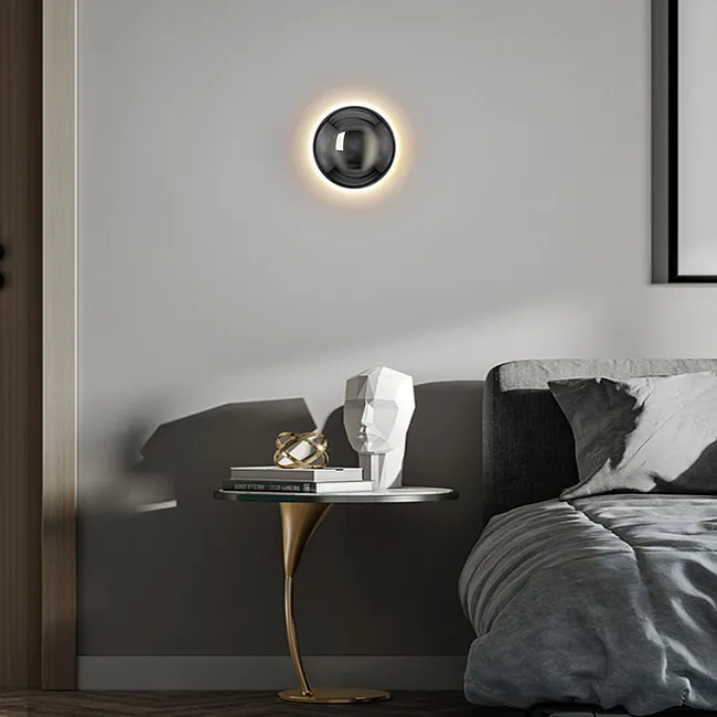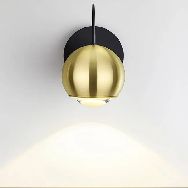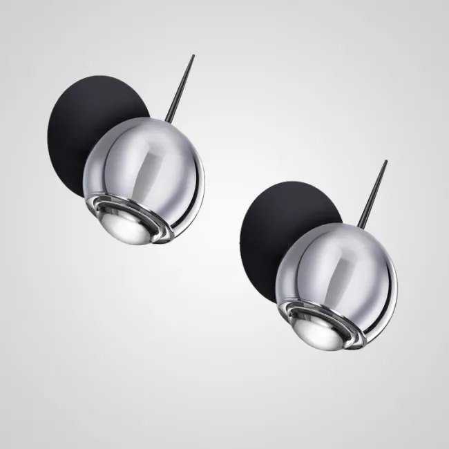 Точечный светодиодный светильник с черным глянцевым корпусом шаровидной формы со встроенной оптической линзой