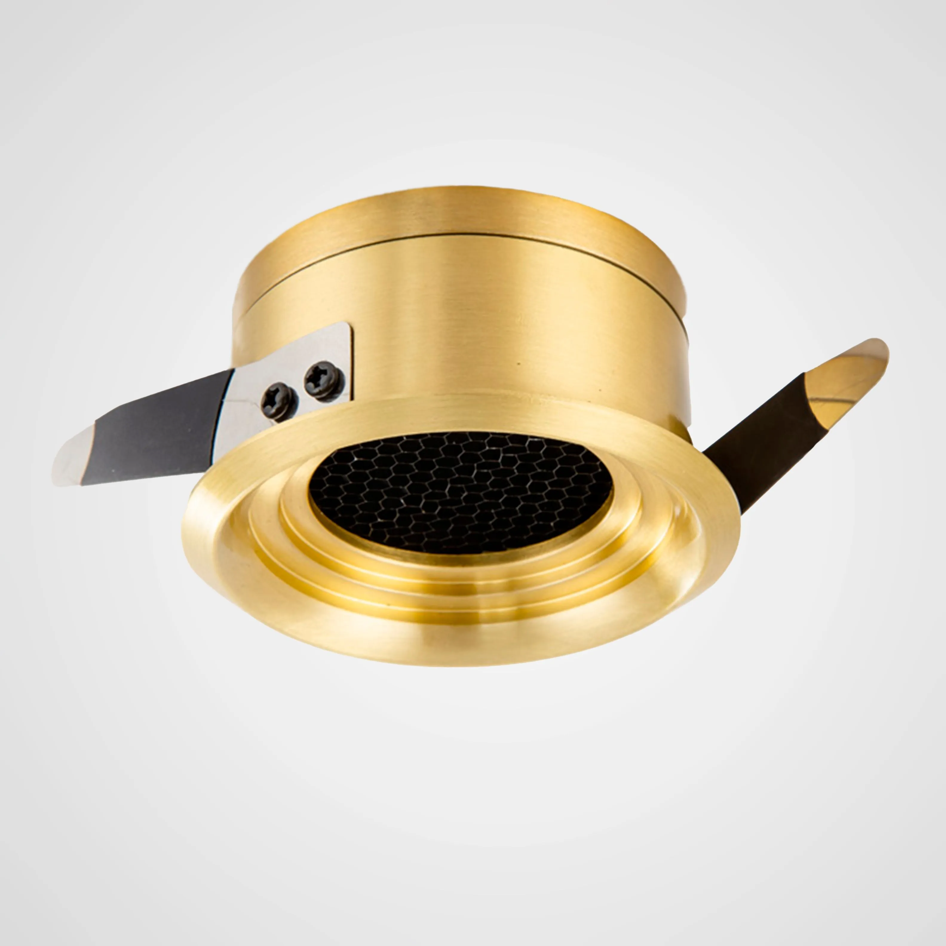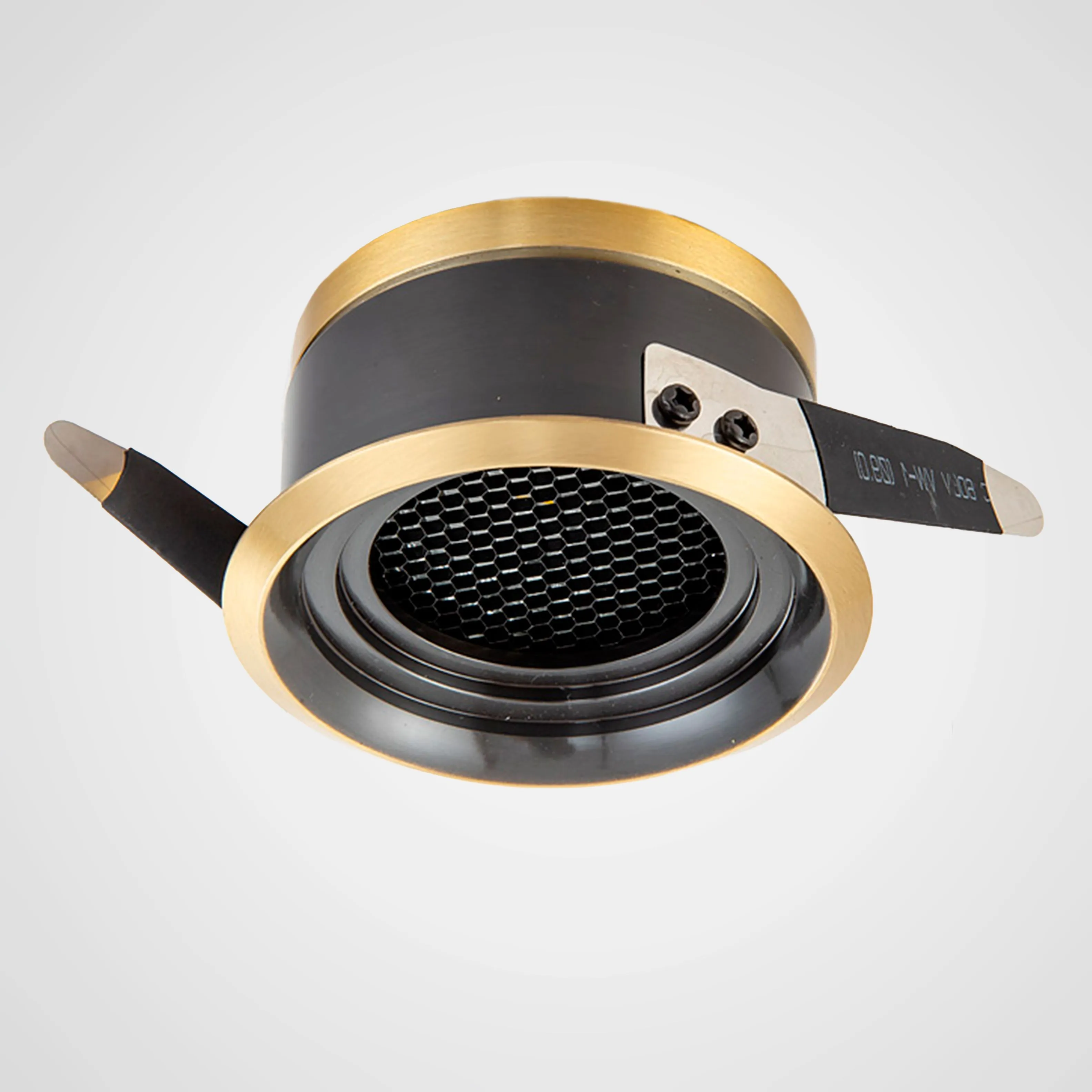 Дизайн светильника выполнен в трех актуальных цветовых вариантах: латунь, белый+латунь и черный+латунь – каждый из которых позволит гармонично сочетать его с любым интерьером. Диаметр светильника составляет 8 см – это оптимальное решение для точечного освещения, которое не будет бросаться в глаза, но при этом обеспечит достаточное количество света.