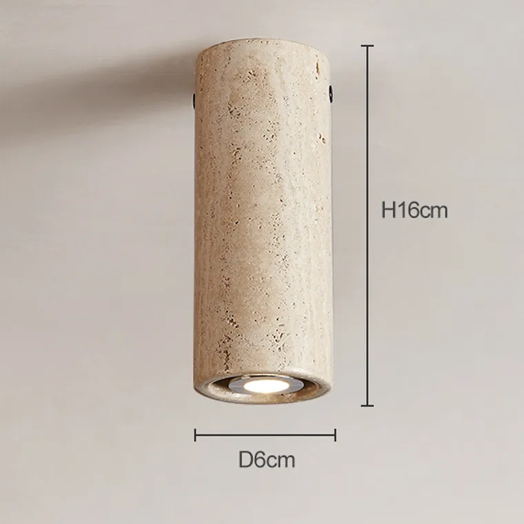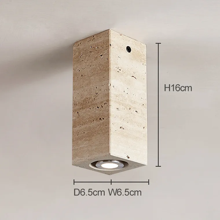 Точечные светильники с цилиндрическим и прямоугольным корпусом из натурального травертина