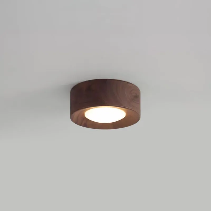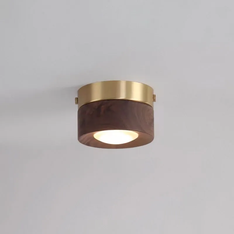 Точечный потолочный светильник с корпусом из темного дерева и латунным основанием