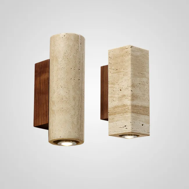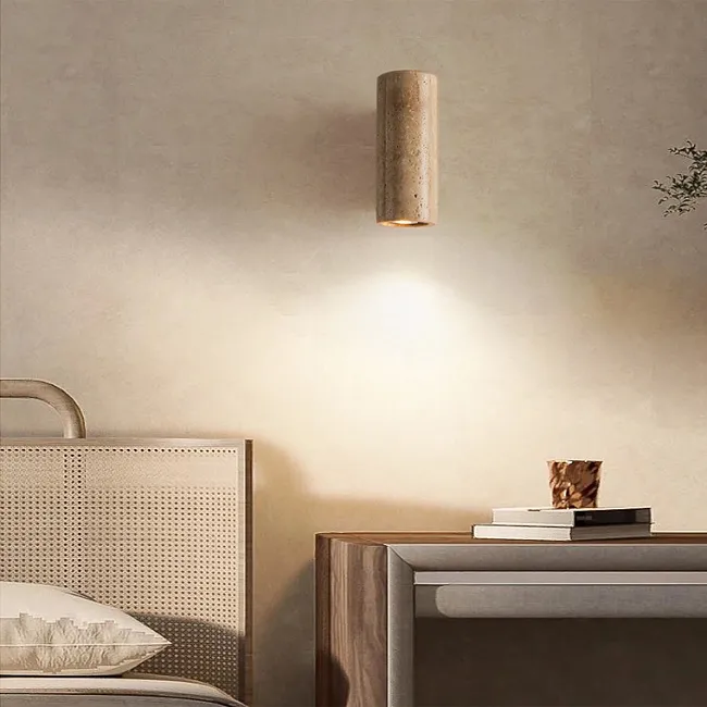 Серия точечных светильников с цилиндрическим корпусом из травертина