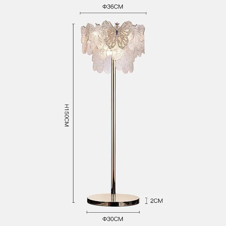 Торшер с ажурным абажуром в форме бабочек из художественного стекла и металла
