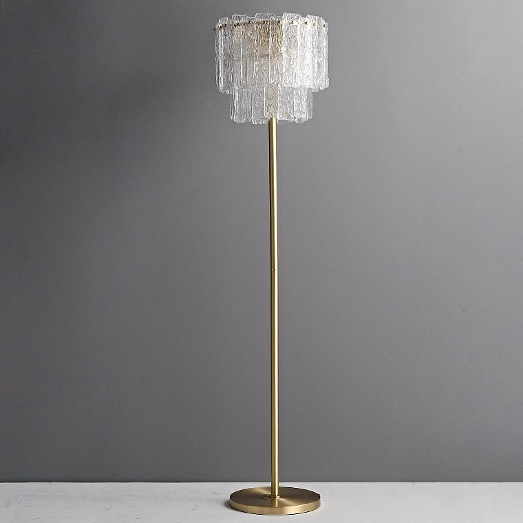 Торшер с каскадным абажуром в виде пластин из фактурного стекла, имитирующего лед