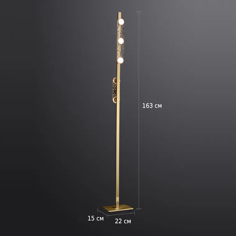 Напольный светильник с точечными источниками в вытянутых рассеивателях из стекла с эффектом льда