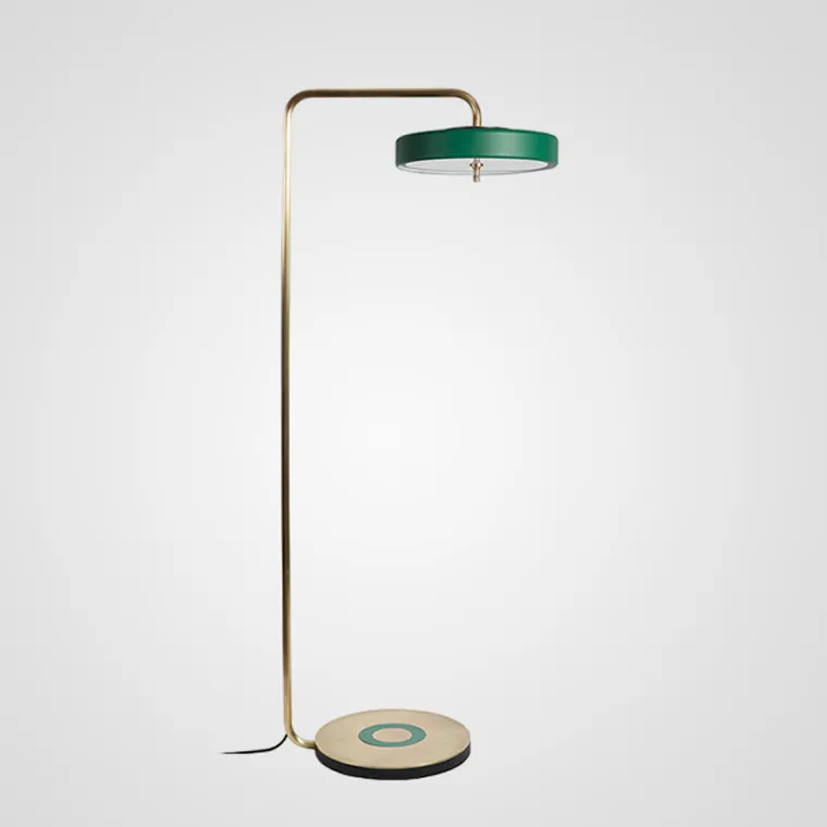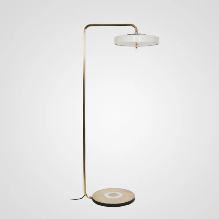Серия светодиодных торшеров с круглым абажуром из металла на вертикальной стойке