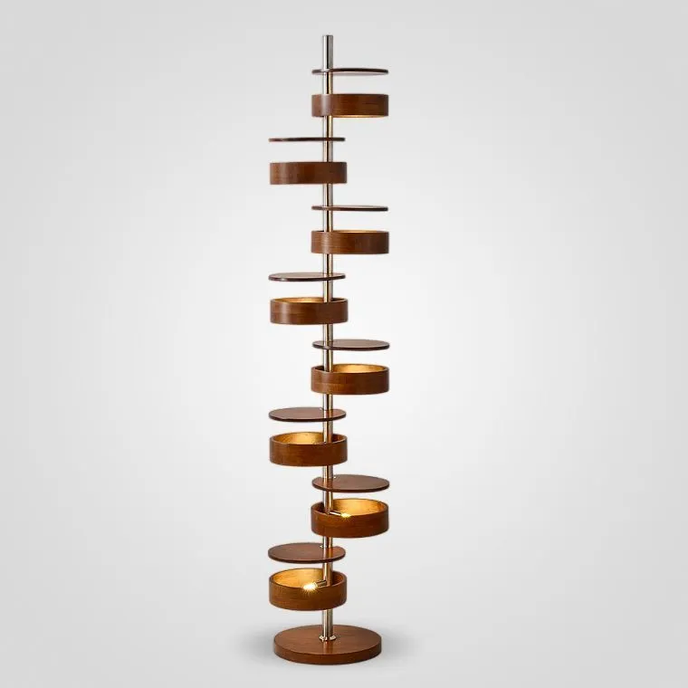 Представьте себе вечер, когда заходящее солнце наполняет комнату мягким золотистым светом, и вы окунаетесь в безмятежную атмосферу уюта и покоя. В этом эмоционально насыщенном пространстве центральным акцентом становится наш оригинальный напольный светильник: вереница круглых абажуров и дисков из дерева, висящих на разной высоте, словно танцующие в воздухе. Вырезающие тени и световые узоры разнообразных плафонов завораживают взгляд и переносят вас в мир природной гармонии и умиротворения.