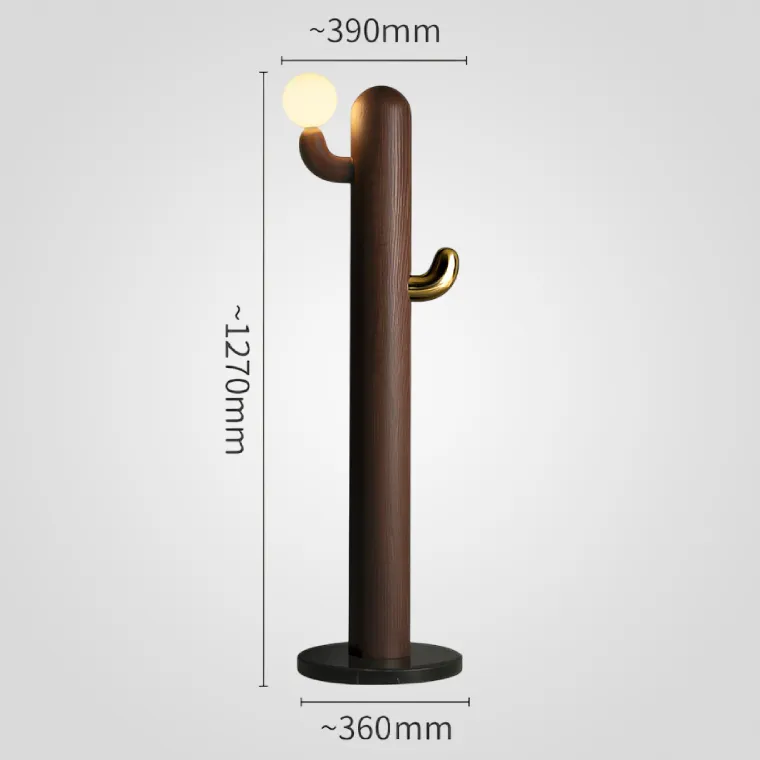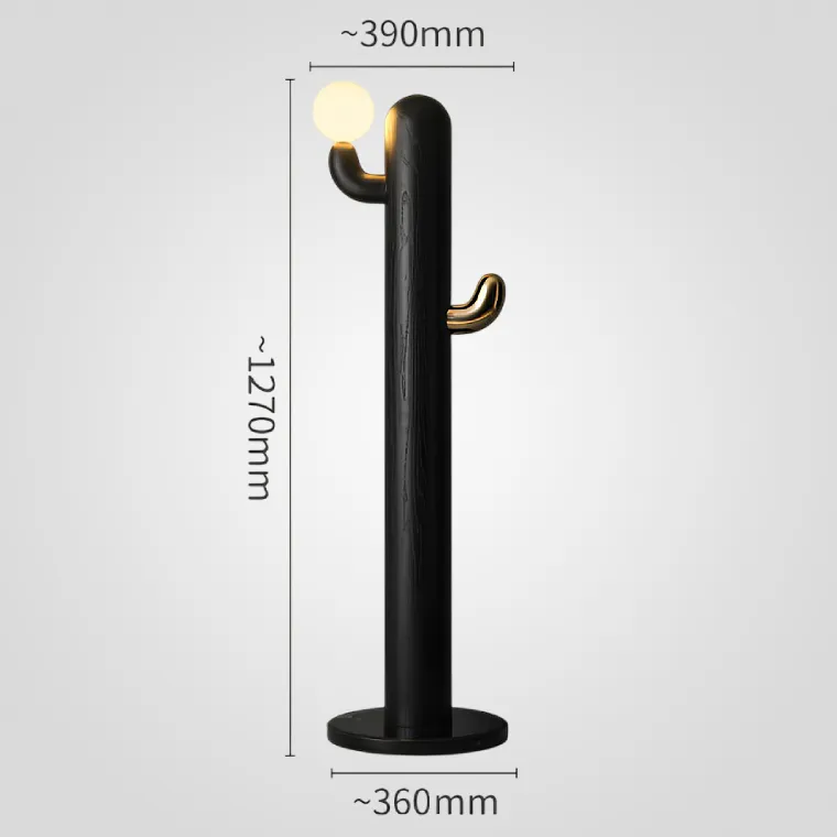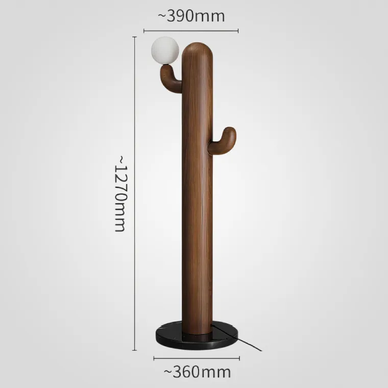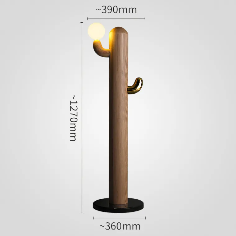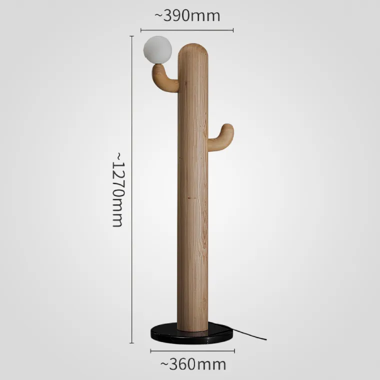 Деревянный напольный светильник в виде кактуса с шарообразным плафоном