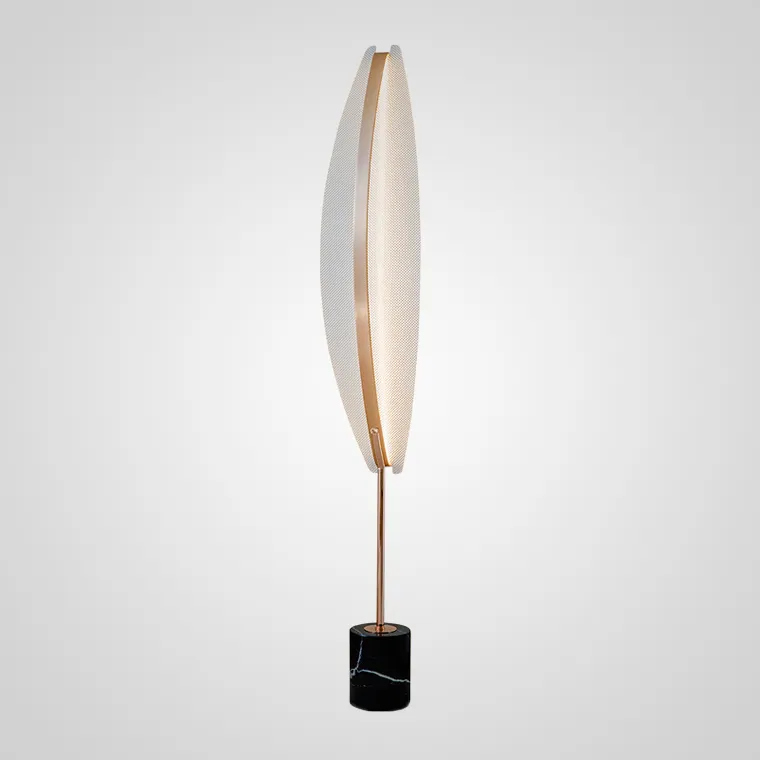 Светодиодный торшер с изогнутым рельефным рассеивателем листовидной формы на мраморном основании
