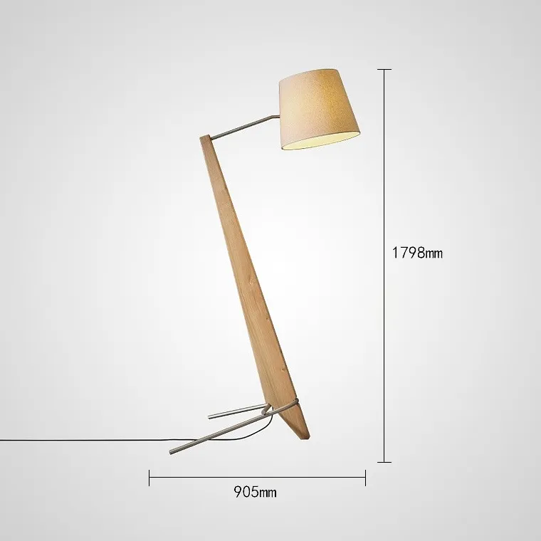 Серия торшеров с наклонным корпусом из высококачественной древесины и текстильным плафоном