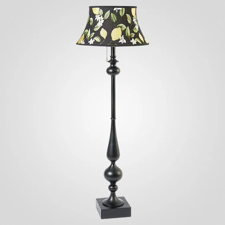 Элегантная драма: Черный деревянный корпус из массива, словно таинственный силуэт, поддерживает черный конусообразный плафон, украшенный дерзкой цветочной вышивкой. Этот торшер станет ярким акцентом в современном интерьере, добавив нотку богемного шика.