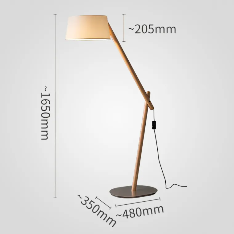Серия торшеров с регулировкой угла наклона корпуса из высококачественной древесины и текстильным плафоном