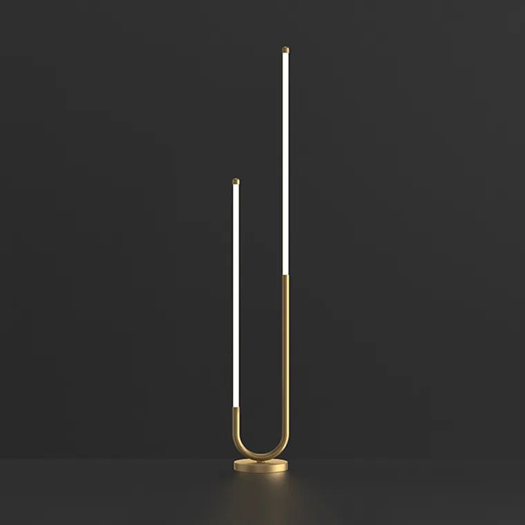 Серия светодиодных торшеров с двумя цилиндрическими матовыми плафонами разной высоты на трубчатом округлом каркасе