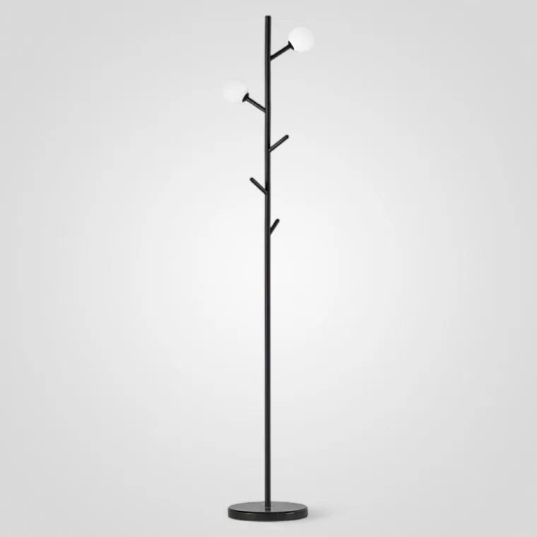 Напольный светильник Doran представляет собой стильное и функциональное освещение, которое добавит изящности и комфортности любому пространству. Сочетание двух шарообразных плафонов из стекла на черном разветвленном корпусе создает потрясающий визуальный эффект и придаёт освещению графичность.