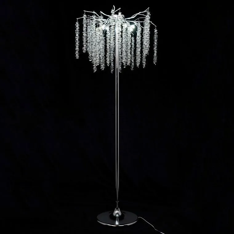 Торшер с подвесным декором из ниток хрусталя на ветвистом каркасе