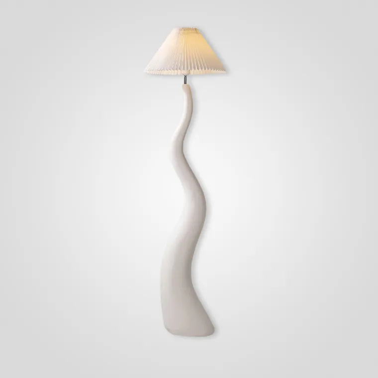 Напольный светильник с механизмом регулировки наклона абажура на волнообразной стойке