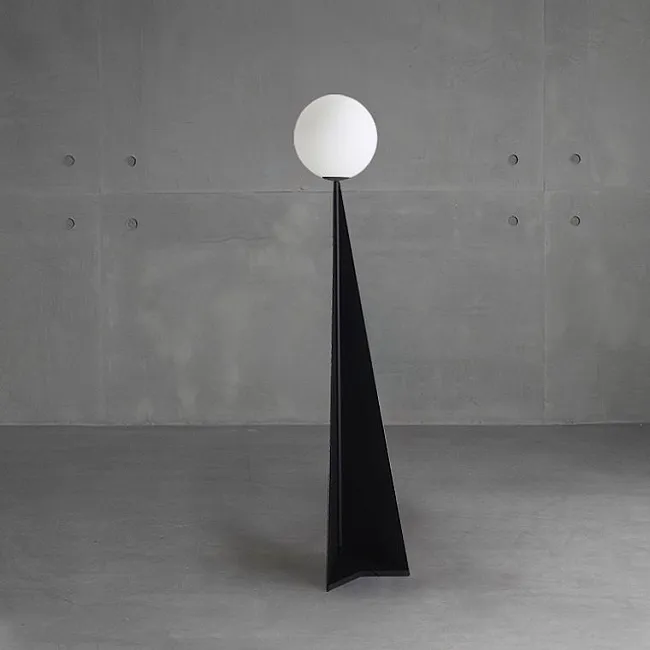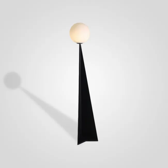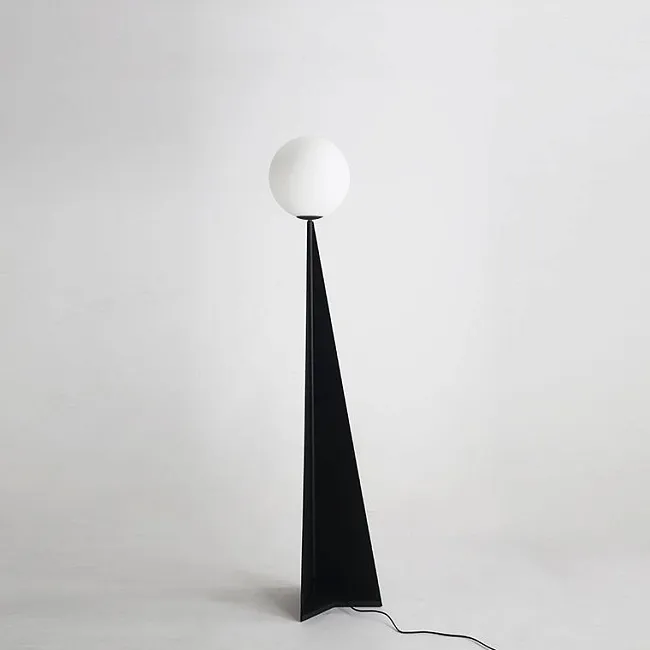 Серия напольных светильников с белыми шарообразными плафонами на вертикальной стойке из настоящей латуни
