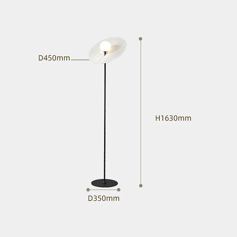 Серия торшеров с шарообразным плафоном и меняющим положение затеняющим диском с рельефной поверхностью