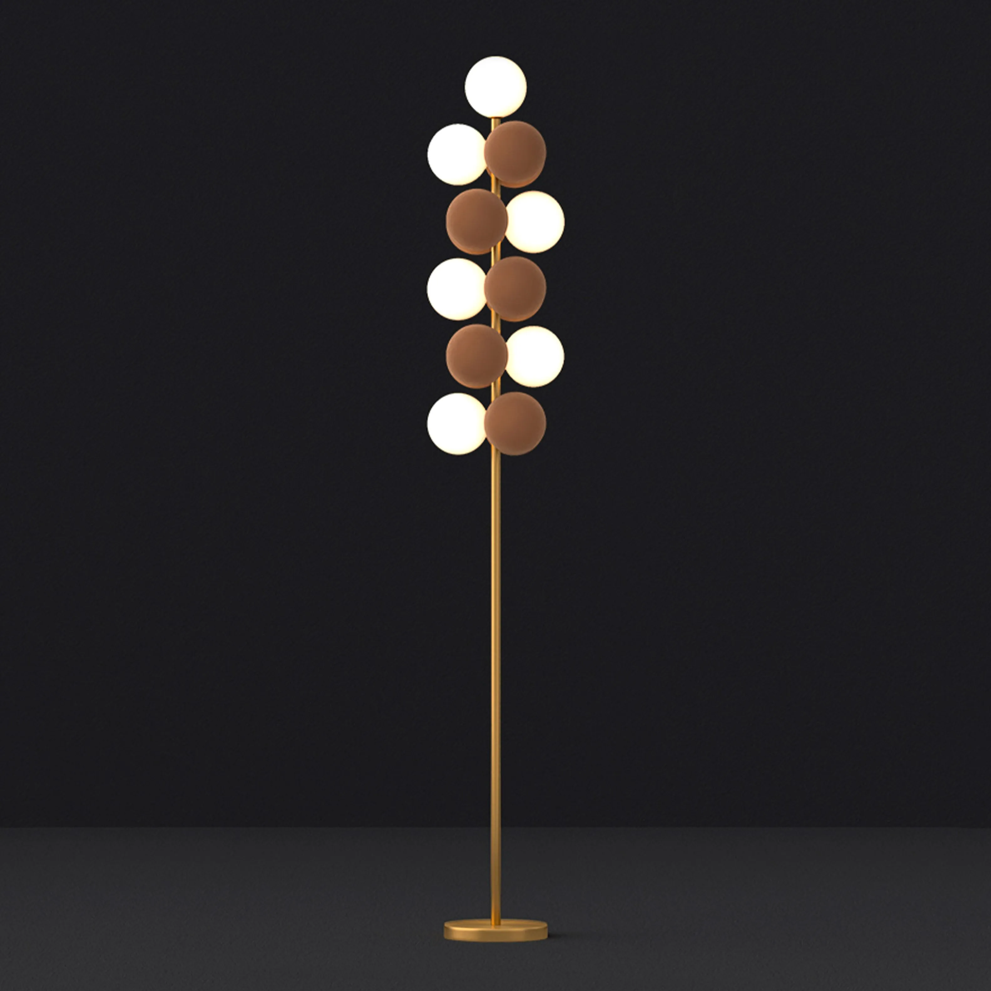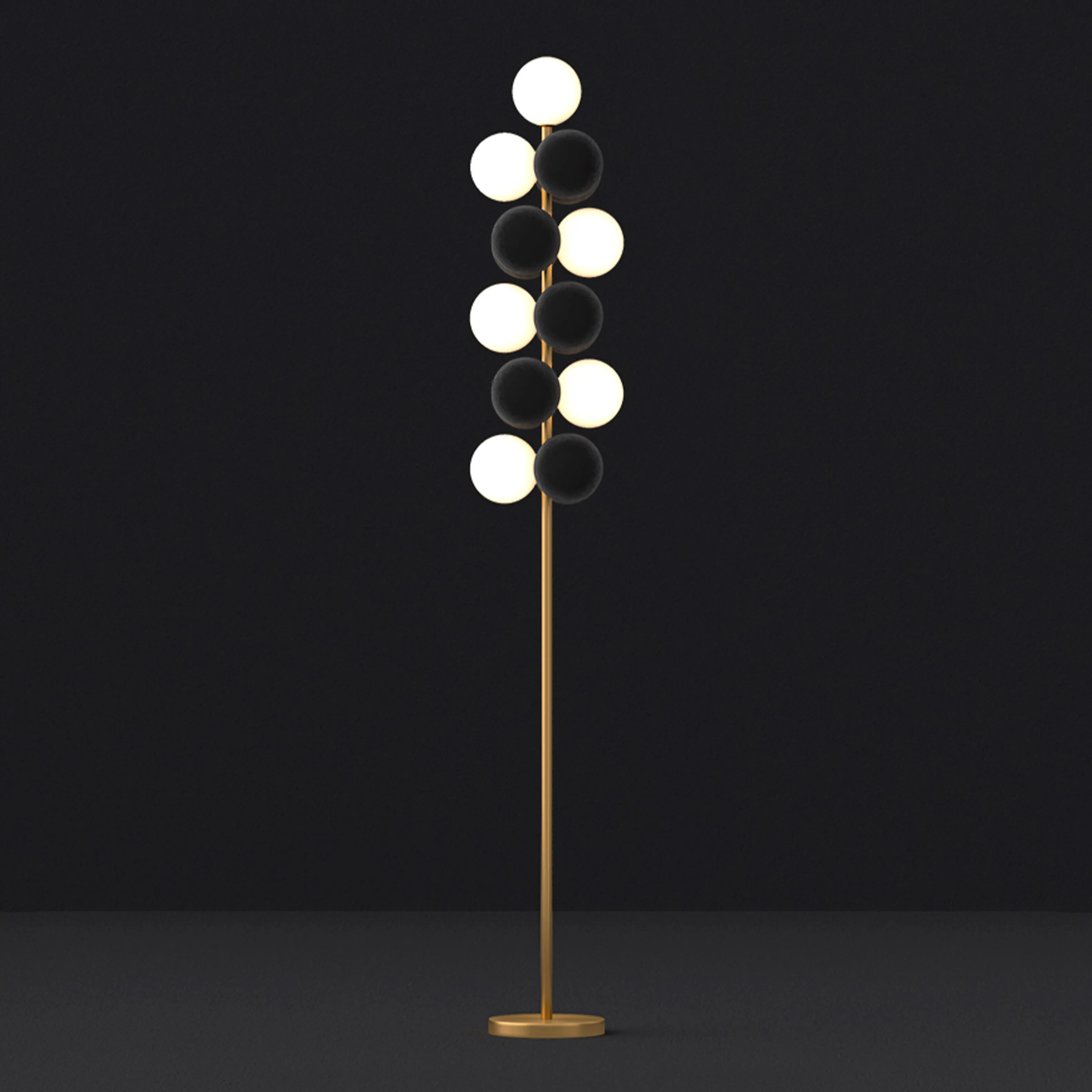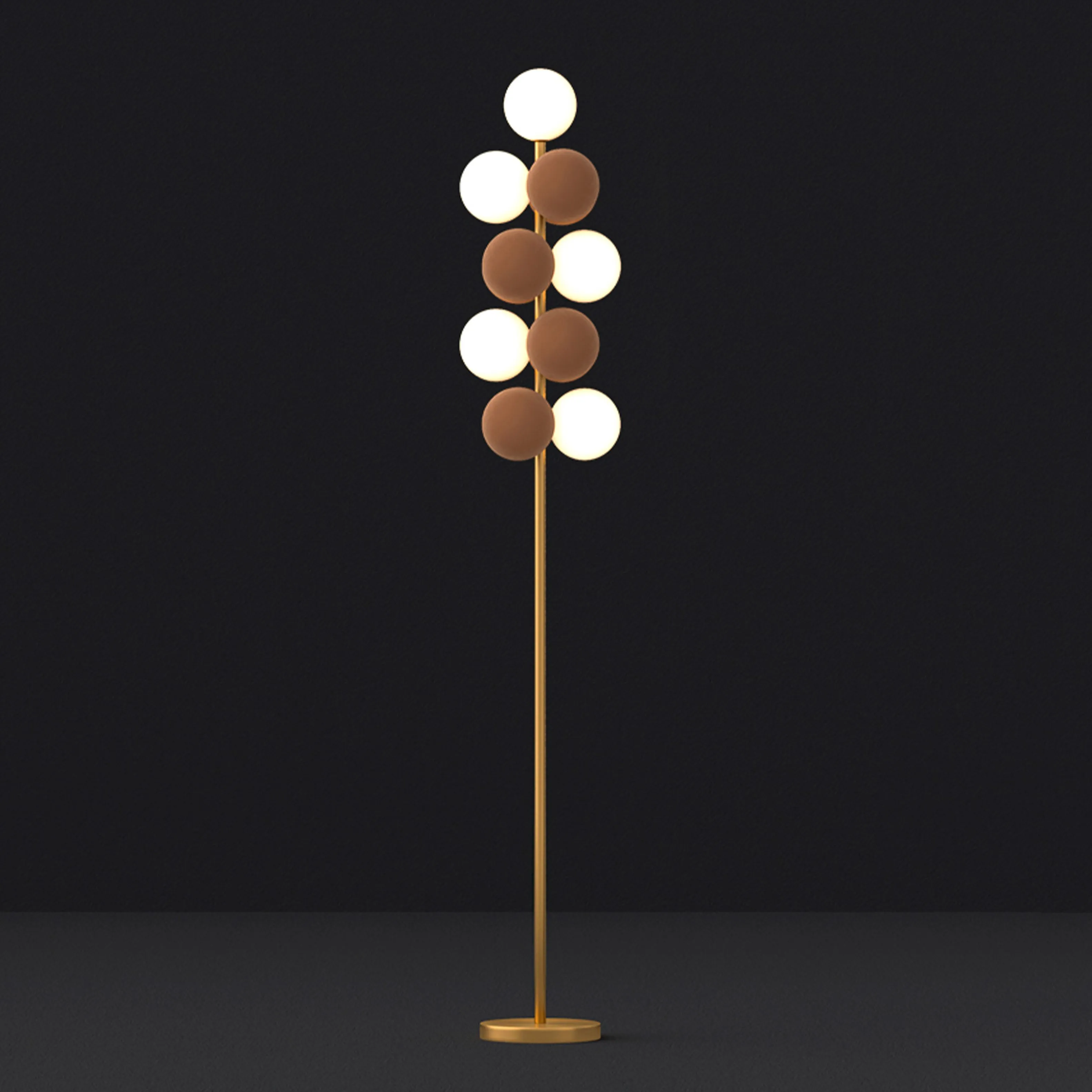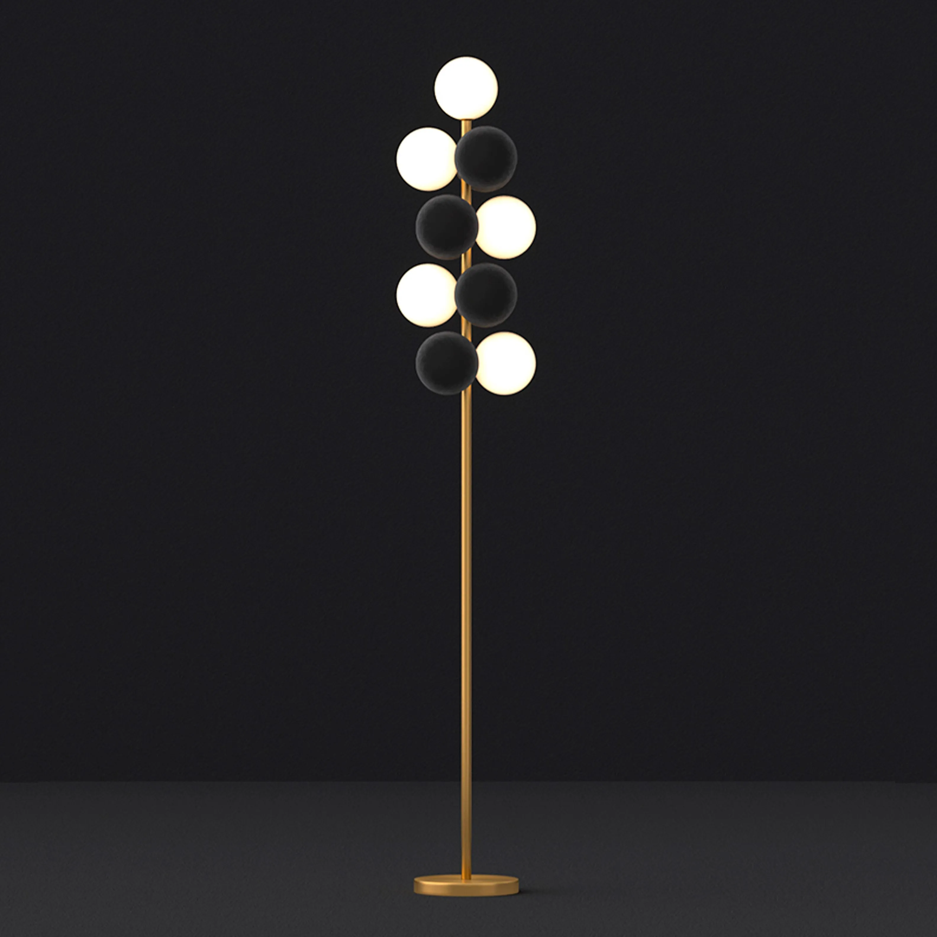 Торшеры LATTE FL доступны в двух вариантах: на 9 и 11 шаров. В зависимости от выбора, в торшере устанавливается 5 или 6 ламп. Размеры торшеров составляют 28х160 и 28х188 см соответственно.