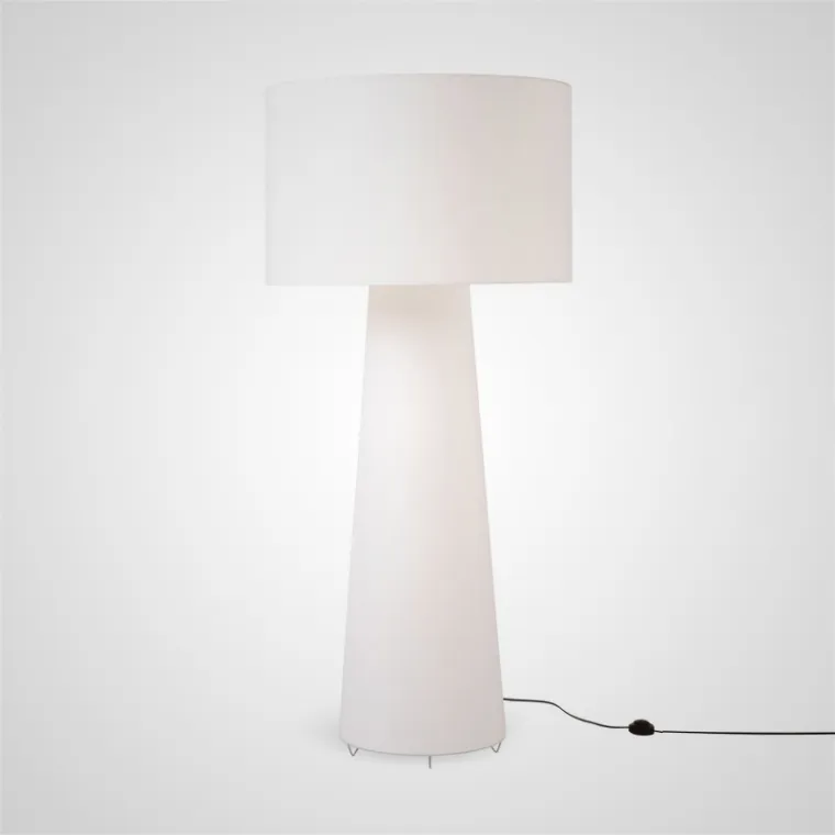 Серия напольных светильников с цилиндрическим абажуром и коническим основанием из белого текстиля