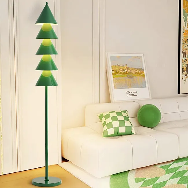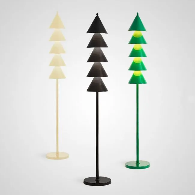 Серия напольных светильников с цилиндрическим абажуром и коническим основанием из белого текстиля