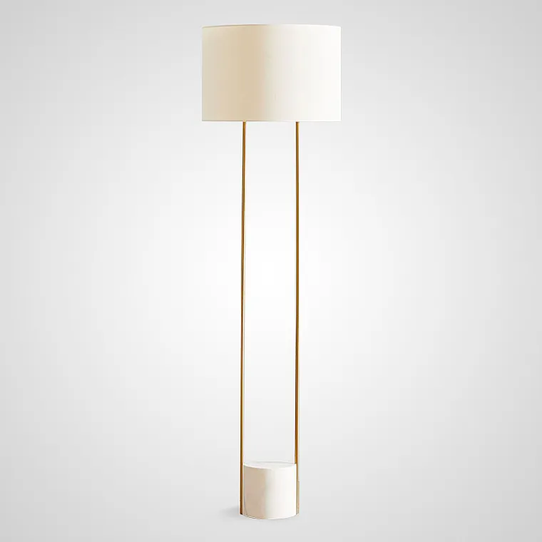 Напольный светильник с цилиндрическим текстильным абажуром и основанием из белого мрамора