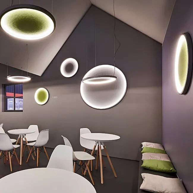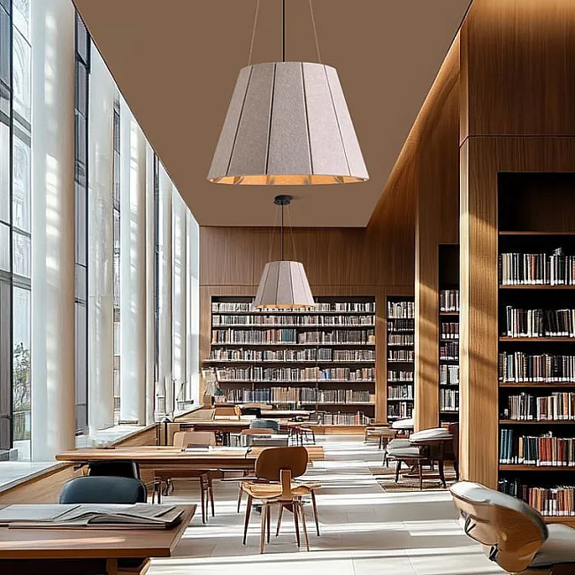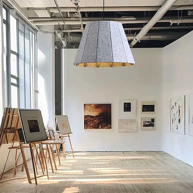 Торшер в минималистичном стиле с абажуром из войлока на металлической стойке с округлым основанием