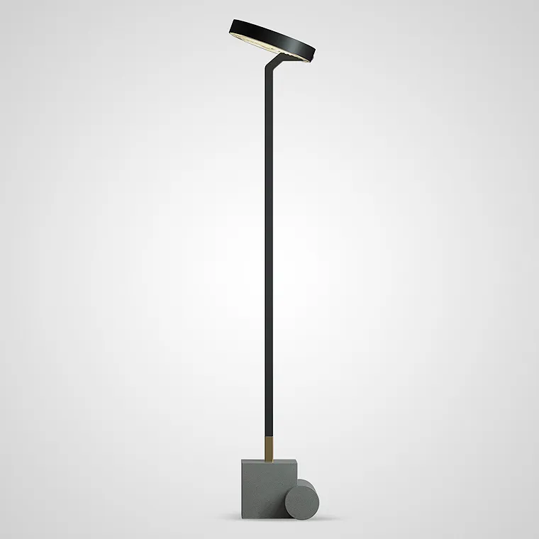 Светодиодный торшер с поворотным рельефным рассеивателем на вертикальной стойке с геометрическим основанием из бетона