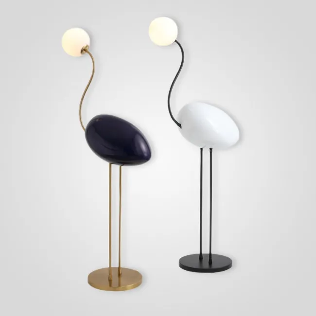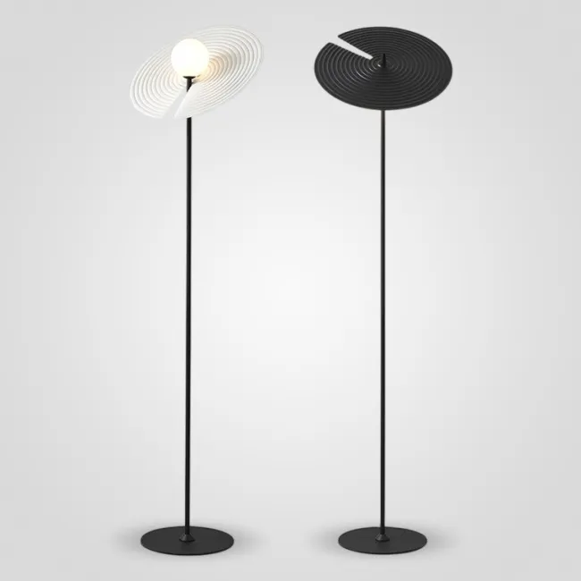 В каталоге напольные светильники разных размеров и форм, из различных материалов. Чёрный цвет органично смотрится на дереве, акриле, бамбуке, камне, мраморе, металлах, пластике, текстиле, стекле. Формы плафонов различны: от простых конусов, цилиндров, шаров, стержней и полусфер до нестандартных и замысловатых перьев, цветов, многогранников, пластин, дисков, птиц, чаш, облаков.