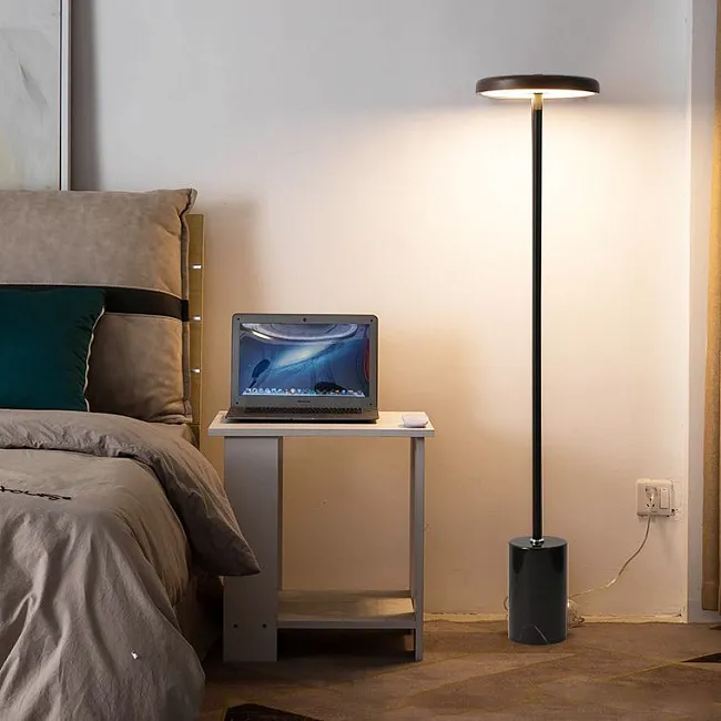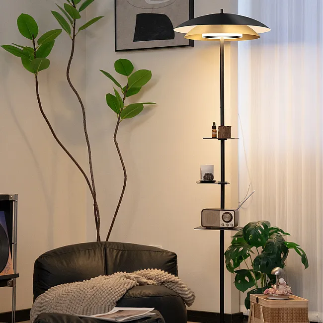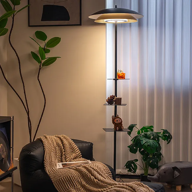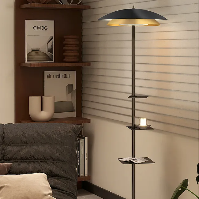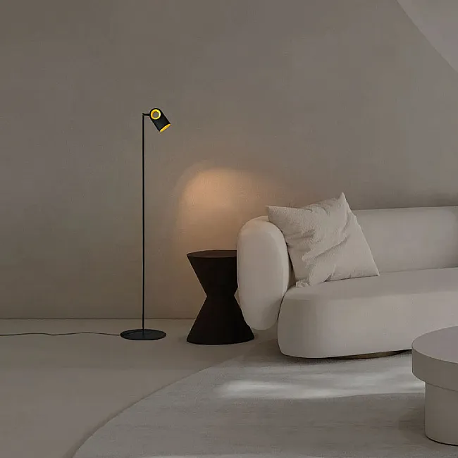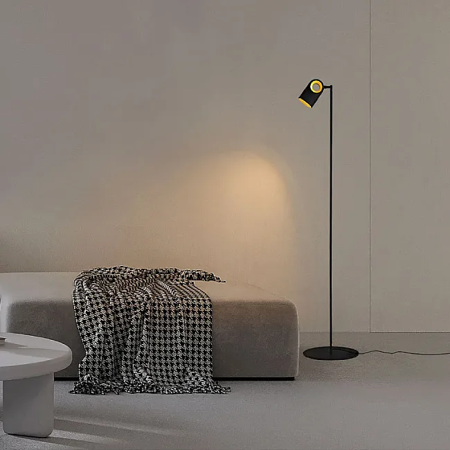 Торшер с чёрным абажуром или закрытым плафоном за счёт непрозрачного материала может создавать направленный световой поток, локализуя его в нужной зоне. Но есть и модели с открытыми лампами, лучи которых рассеиваются. В таких приборах обычно используют светодиоды с мягким, комфортным свечением без сильного нагревания.