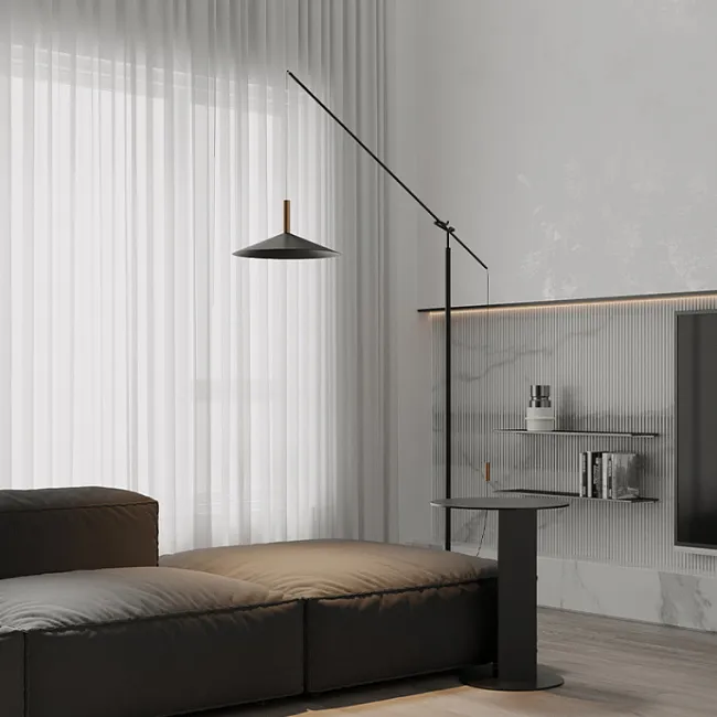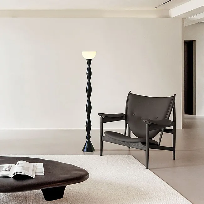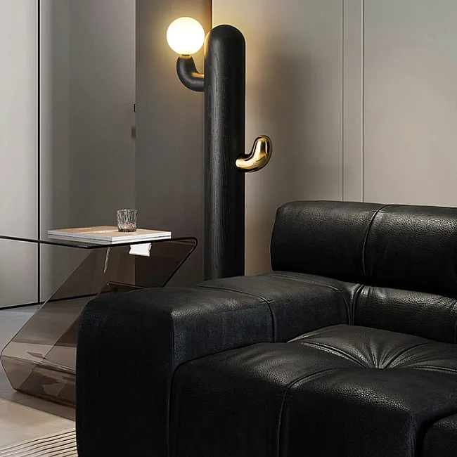 Чёрный цвет олицетворяет роскошь, безупречный вкус и элегантность. Он благодаря своей универсальности и нейтральности сочетается с различными тонами: тёмными, светлыми, пастельными, яркими. В монохромном интерьере или на однотонном, бледном фоне чёрный торшер создаст выделяющийся контрастный акцент.