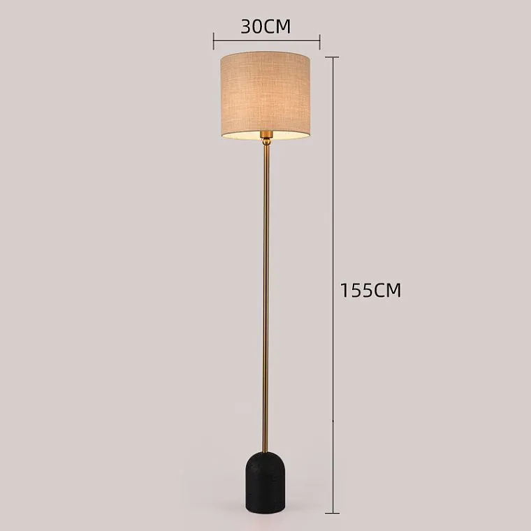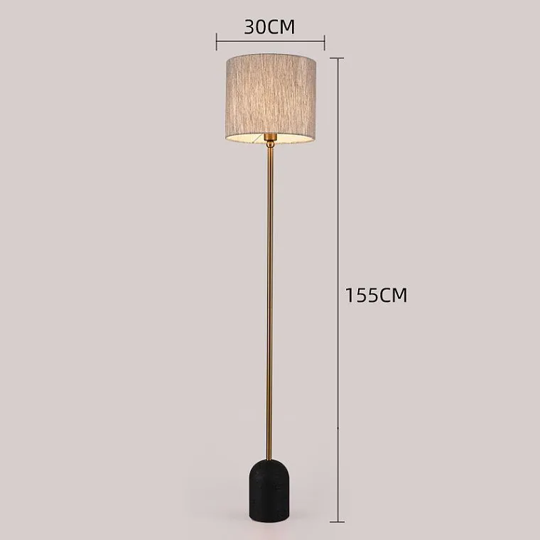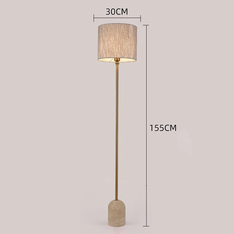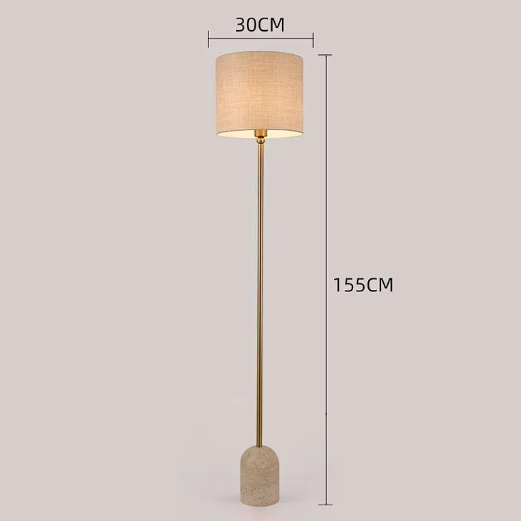 Серия торшеров с основанием из натурального травертина и текстильным плафоном на металлической стойке