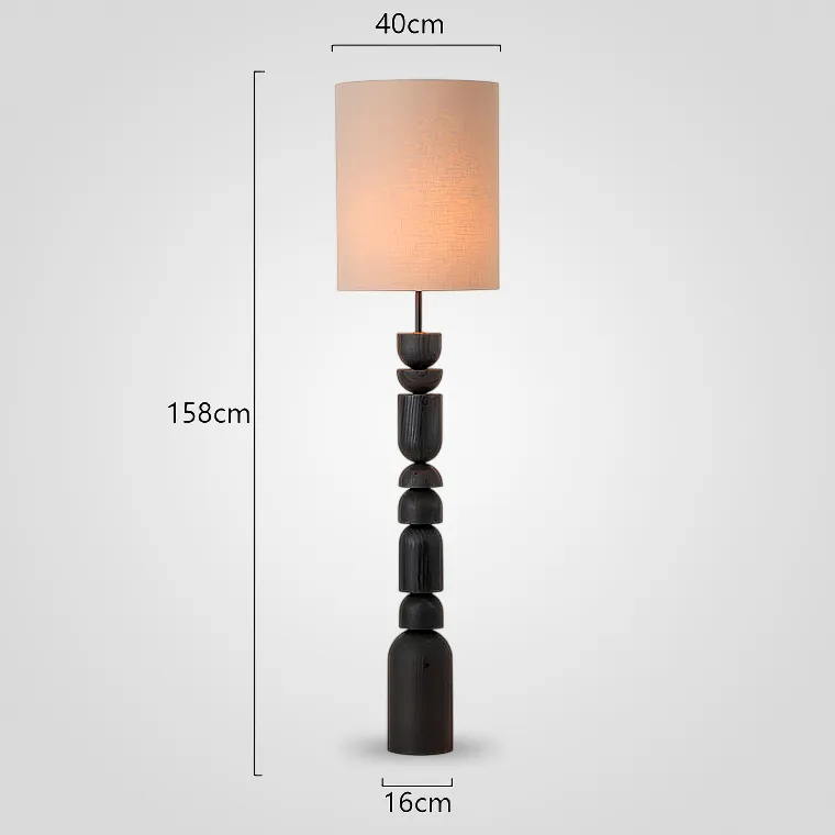 Торшер с фигурной стойкой из высококачественной древесины и цилиндрическим текстильным плафоном