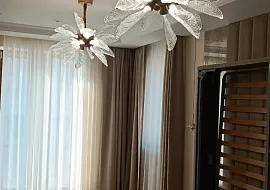Это что-то на богатом и роскошном))) но нам с женой нравится! У нас гостиная в коттедже большая, поэтому решили купить светильник сразу с шестью лампами. Качественные светодиоды, у которых можно выбирать свет – холодный, промежуточный и тёплый. Плафоны сделаны круто! Спирали из прямоугольных хрусталиков. Включаем и всё светится, как драгоценности.